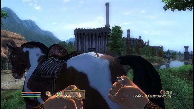 特異なレベルアップシステムのおかげで、せっせとスキル上げに精を出す毎日。簡単に言うと、ステータスボーナスを満額の+5ポイント得るために、関連する3つのスキルを10上げなくてはならない。そして、それ以外のスキルはなるべく上げてはならない。写真は格闘スキルを上げるために、愛馬のお尻をサンドバッグにする風景…(涙) スキル計算用にiPhone用Webアプリまで作っちゃったよw つくづく経験値を無くして成功したRPGは無いねぇ。