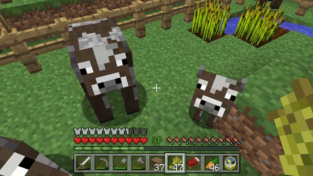 つぶらな瞳でこちらを見つめてくる動物さんたち。ま、お肉になるんだけどね♪ MOBと呼ばれるこれらの動物は、一定の法則で発生/消滅するが、20マス以上動けないように囲うと、消滅せずに飼うことができる。それぞれに好みの食べ物があり、手に持つと近寄ってきてL2で与えるとすぐに子供が出来る。ちょっと殖やすの簡単すぎw